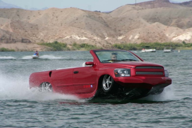 On land, the Python is a custom-built hot rod that looks like a cross between a Chevy Avalanche and a Corvette. Out on Lake Havasu, where you just know one of these will show up, it’s a 20 foot luxury boat appointed with a polished wood dashboard and a leather wraparound bench seat — just like the Chris Craft you keep at your house in the Hamptons. Sadly, air conditioning, an automatic transmission and a hardtop are not currently available.